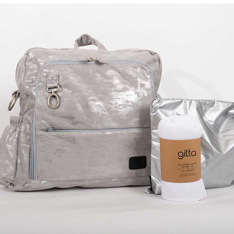 תיק בייסיק, ארגונית סומק, מיני נחשוש אפור וחיתול במבוק 60*60 אינפיניטי