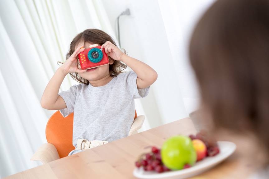 צלמו תמונות עם המצלמה הראשונה של פלאן טויס. הילדים יסתכלו על העולם מבעד עדשת הקליידוסקופ המסתובבת של המצלמה. מצלמת הקליידוסקופ מאשרת לילדים להסתכל על העולם באופנים שונים.