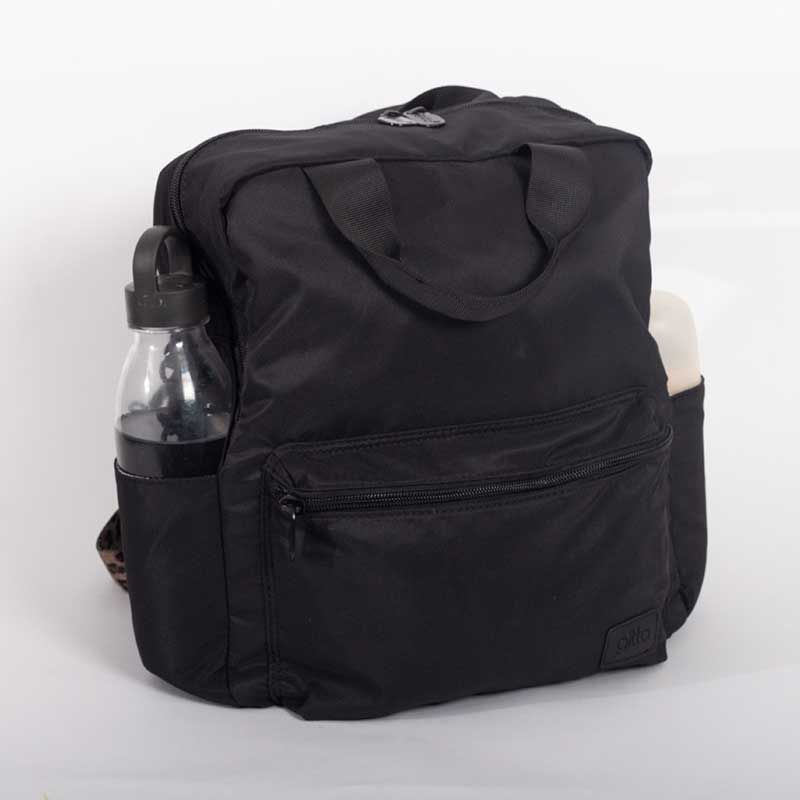 - כיס קדמי נסגר עם רוכסן ושני כיסי בקבוק בצדדים.