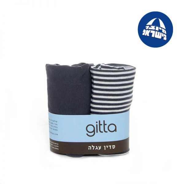 זוג סדינים לעגלה פסים אפור כהה