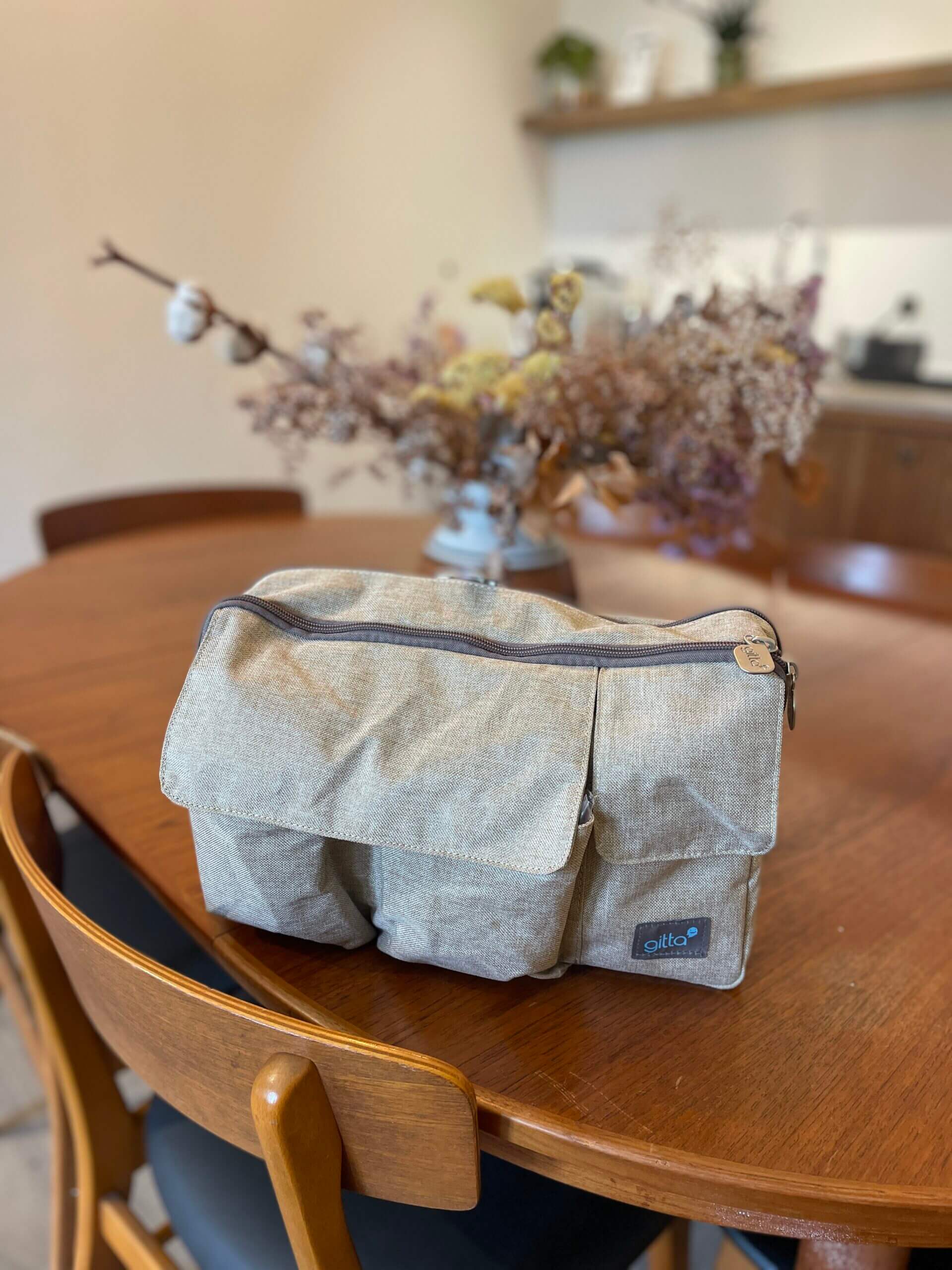 - 2 handy outer compartments for bottles + 1 for cell phone.